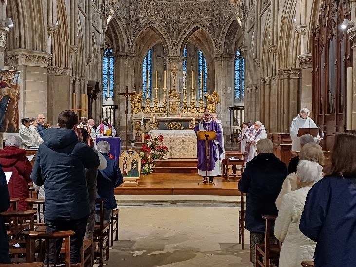 Avec l’arrivée de nos frères eudistes, Evaristus et Jaime, le choix s’est porté sur l’église Saint-Pierre de Caen, permettant ainsi à un plus grand nombre de fidèles de participer à cet événement exceptionnel.