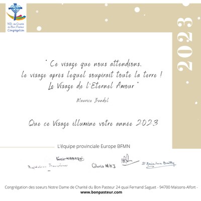 Les Sœurs de N.D. de Charité du Bon Pasteur - Europe BFMN vous souhaitent un très joyeux Noël ! Et vous adressent leurs vœux 2023.