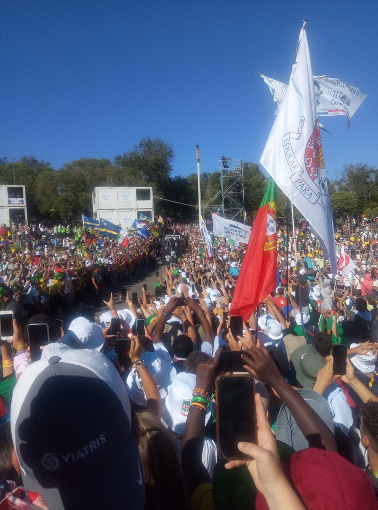 Une foule innombrable, arborant les couleurs du drapeau du Portugal, des sacs sur le dos, des signes distinctifs qui démontrent une diversité culturelle et linguistique, ainsi que des visages souriants et infatigables, se sont rassemblés cet été à Lisbonne capitale du Portugal. Tous se dirigeaient vers la recherche de la joie de vivre ensemble la foi chrétienne. La joie des rencontres et un événement transformateur sont des termes entendus lors du pèlerinage des jeunes aux Journées Mondiales de la Jeunesse (JMJ) 2023, qui a pour thème « Marie se leva, et s’en alla en hâte » (Luc 1,39).